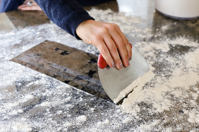 Use it to transfer chopped onions, peppers, herbs, or carrots from the cutting board to a skillet, divide dough into pieces for rolls, clean playdough off a table, clean counters after baking, scoop up any chopped ingredients, or scrape sticky bits from a work surface.