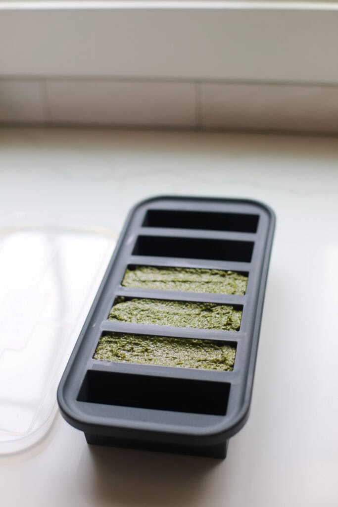 I use them for soups, sauces, broth, chili, cooked beans, shredded meat, smoothie ingredients, and even leftover tomato paste or pesto. Once frozen, you can pop the cubes out and store them in a freezer bag.